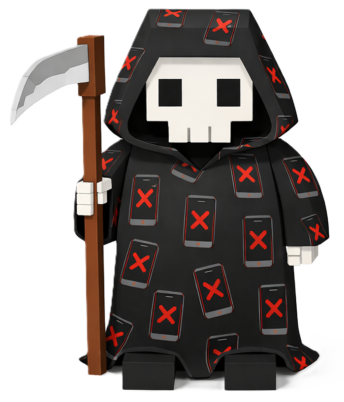Grimmyは、使用時間の可視化と(プレミアムでは)アプリブロックを組み合わせ、数字より本能に刺さる「死神の姿」と着せ替えスキンで、先延ばしが勝ち続けないようにします。